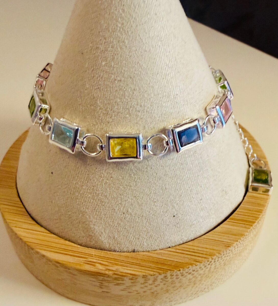 Multicolor Stone Bracelet | Lab Created Gem Bracelet | Adjustable 6.5–8 Inch Silver Bracelet | Gift for Her