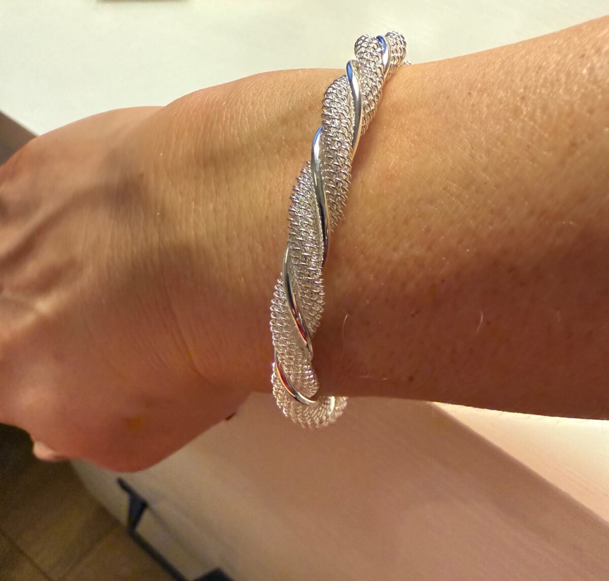 Mesh Adjustable Bracelet | Twisted Silver Cuff Bracelet | Modern Minimalist Jewelry