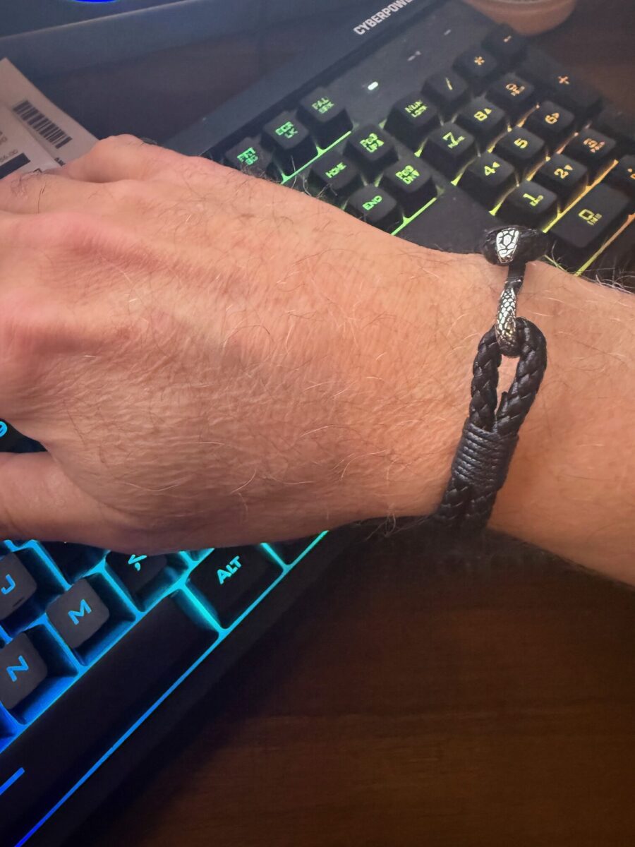 Serpent Link Men’s Bracelet | Braided Black Leather & 925 Sterling Silver Snake Clasp