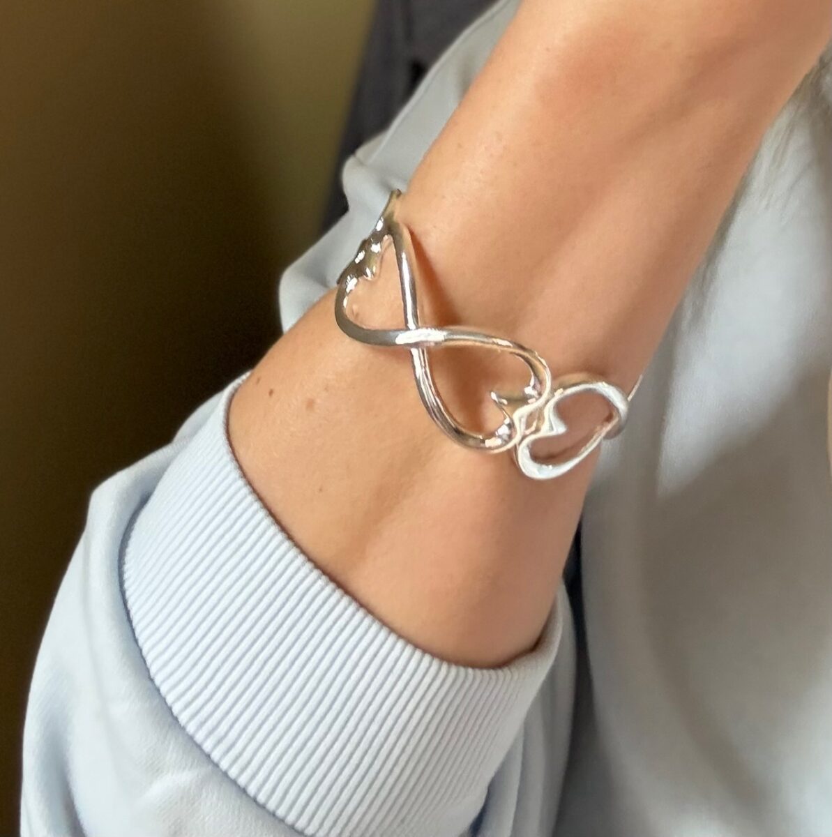 Sterling Silver Double Heart Adjustable Bracelet | Infinity Heart Cuff Bracelet | Romantic Minimal Jewelry